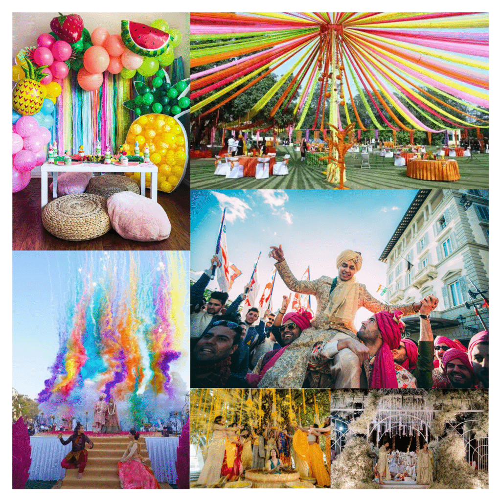 We offer end-to-end wedding solutions—from planning and coordination to custom theme décor that reflects your unique story. Make a grand impression with creative couple entries and lively baraat ideas. Enjoy unforgettable moments with live entertainment, pre-wedding shoots, and digital storytelling through reels and videos. Impress your guests with beautifully designed digital invitations and thoughtful, personalized gifting. Our expert team ensures every detail is seamless, stylish, and full of joy, making your big day truly magical.
